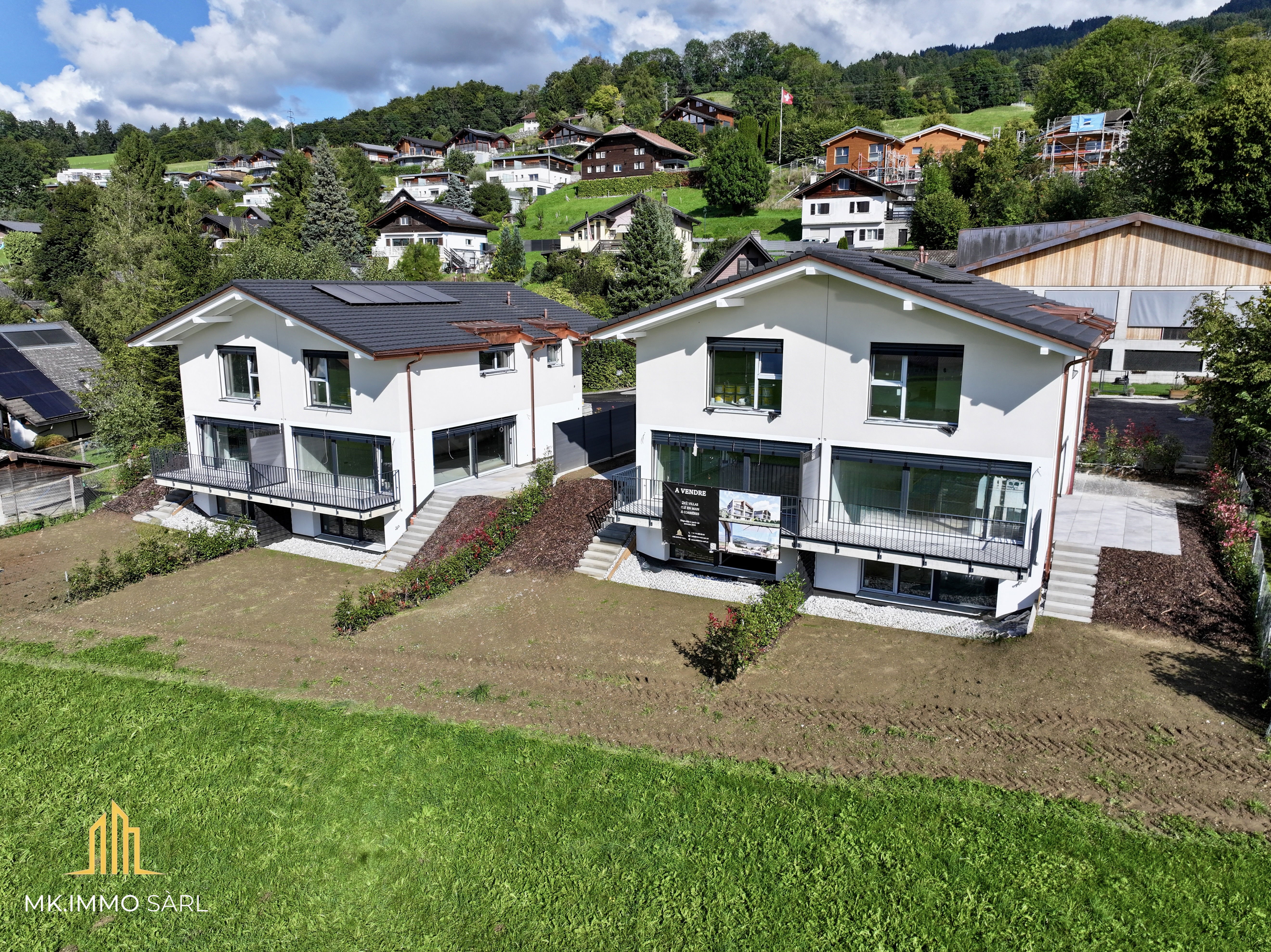2x2 villas à Corbières avec vue sur le lac de Gruyère.